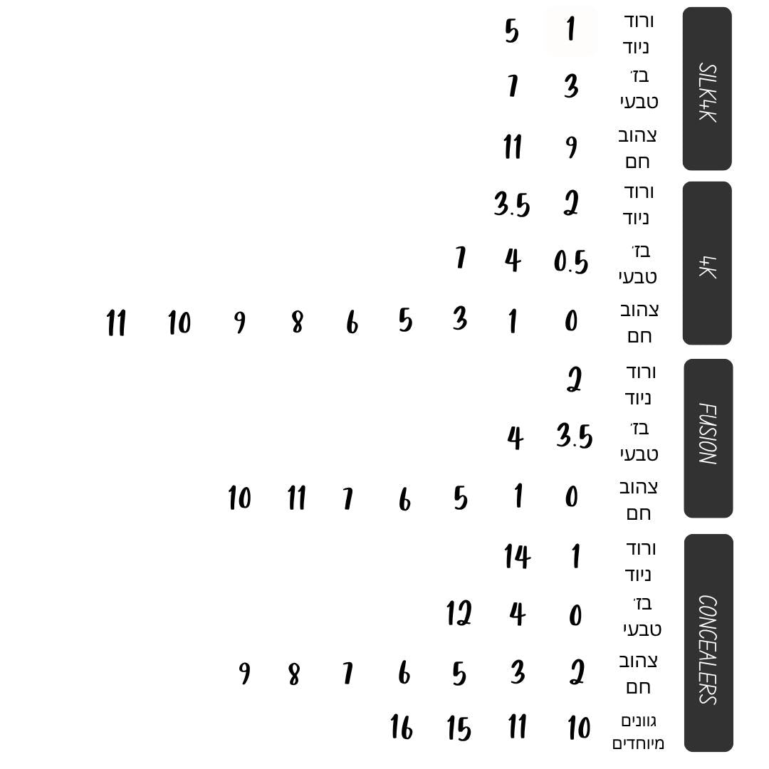 מגיע ב-16 גוונים שונים להתאמה מושלמת לכל גוון עור.